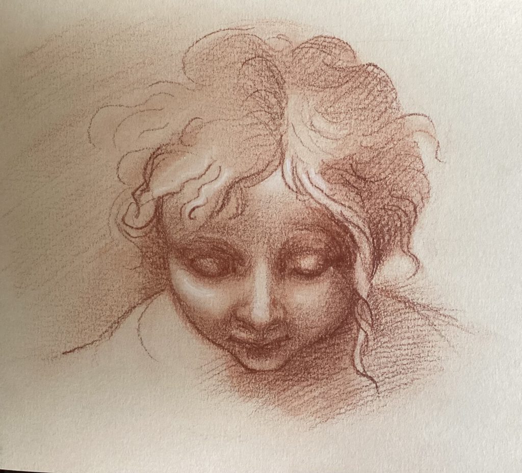Von zartrosé bis dunkelbraun zeigt sich Rötel in den schönsten Farbschattierungen, gern auch auf zartgefärbten Papieren.